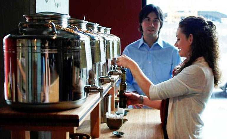 "À la pression ", ou "faites le plein d'huile d'olive, où les consommateurs sont invités à déguster des huiles d'olive distribuées dans des récipients en acier brillant appelés "fusti », ont ouvert leurs portes au Royaume-Uni, aux États-Unis et dans le monde. On estime qu'il y a plus de 500 magasins de ce type aux États-Unis seulement.